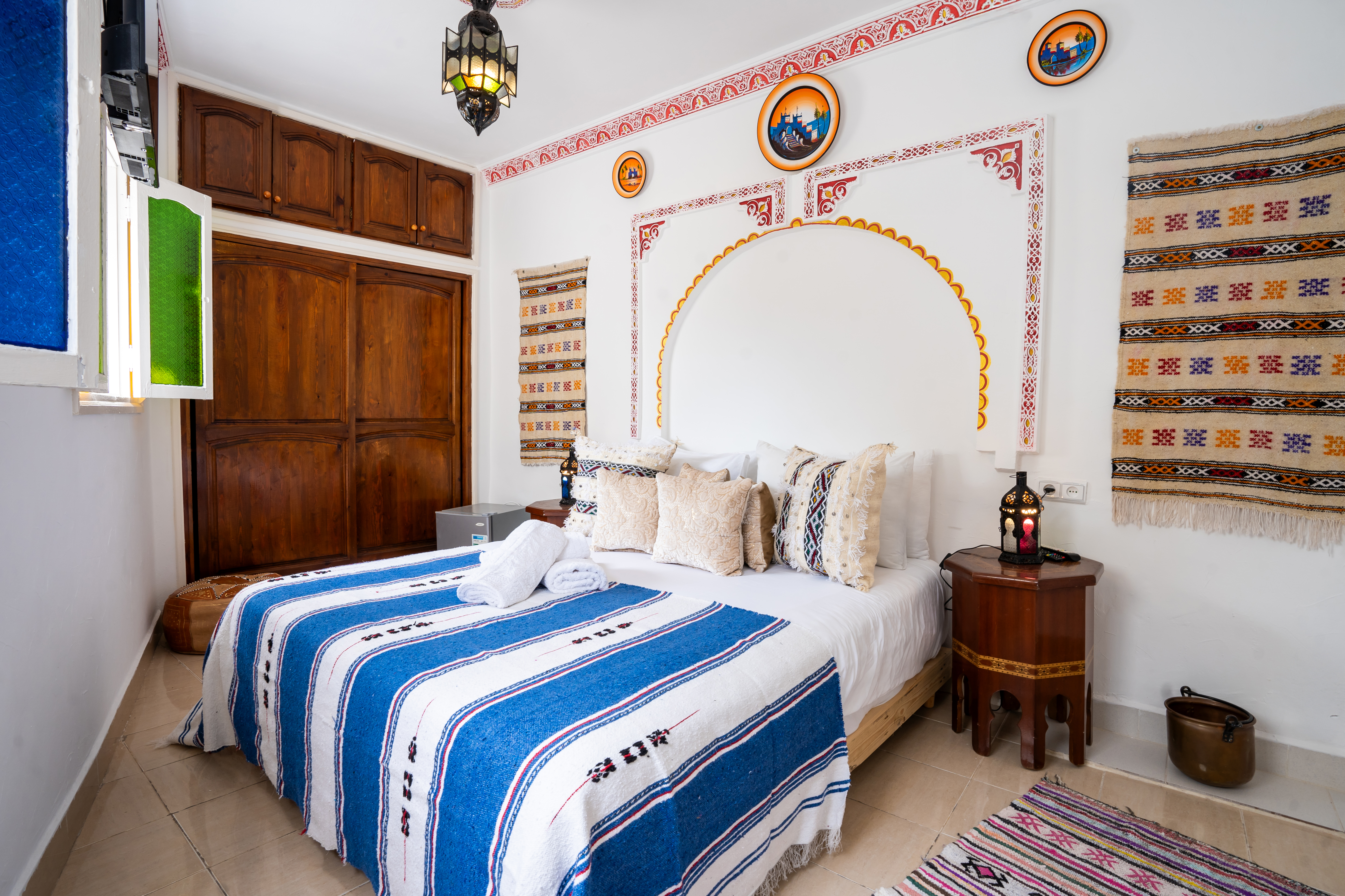 DAR CHEFCHAOUEN is a welcoming accommodation located in Tangier, just 200 meters from the city center and an 18-minute walk from Tangier Beach. It offers rooms equipped with flat-screen TVs and free Wi-Fi. Guests can also enjoy a pleasant terrace. The riad is close to landmarks such as the Kasbah Museum, Dar el Makhzen, and the Forbes Museum. Ibn Battuta Airport is 12 km away.